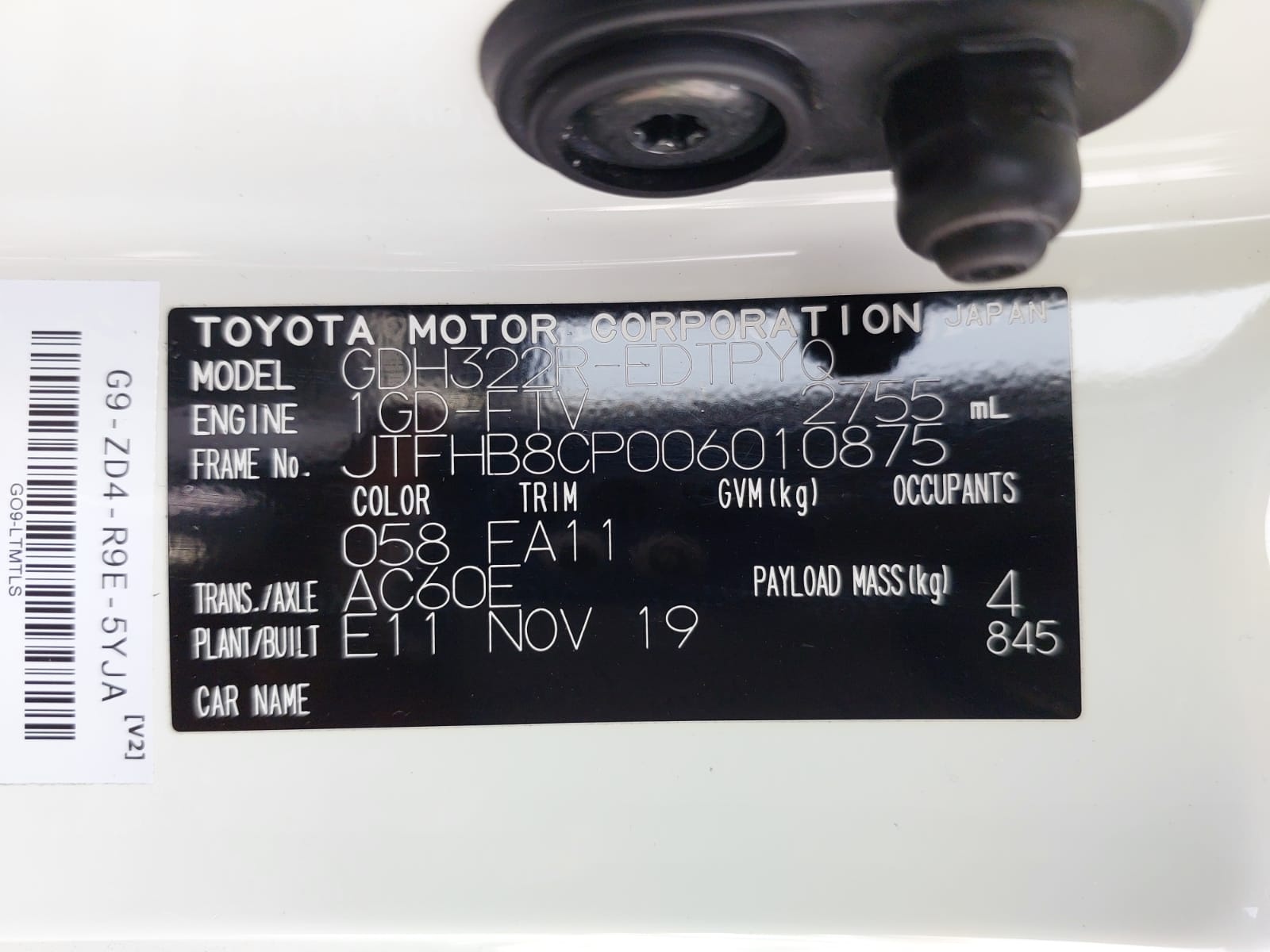 Chassis # JTFHB8CP006010875 Mileage 139800 (km)