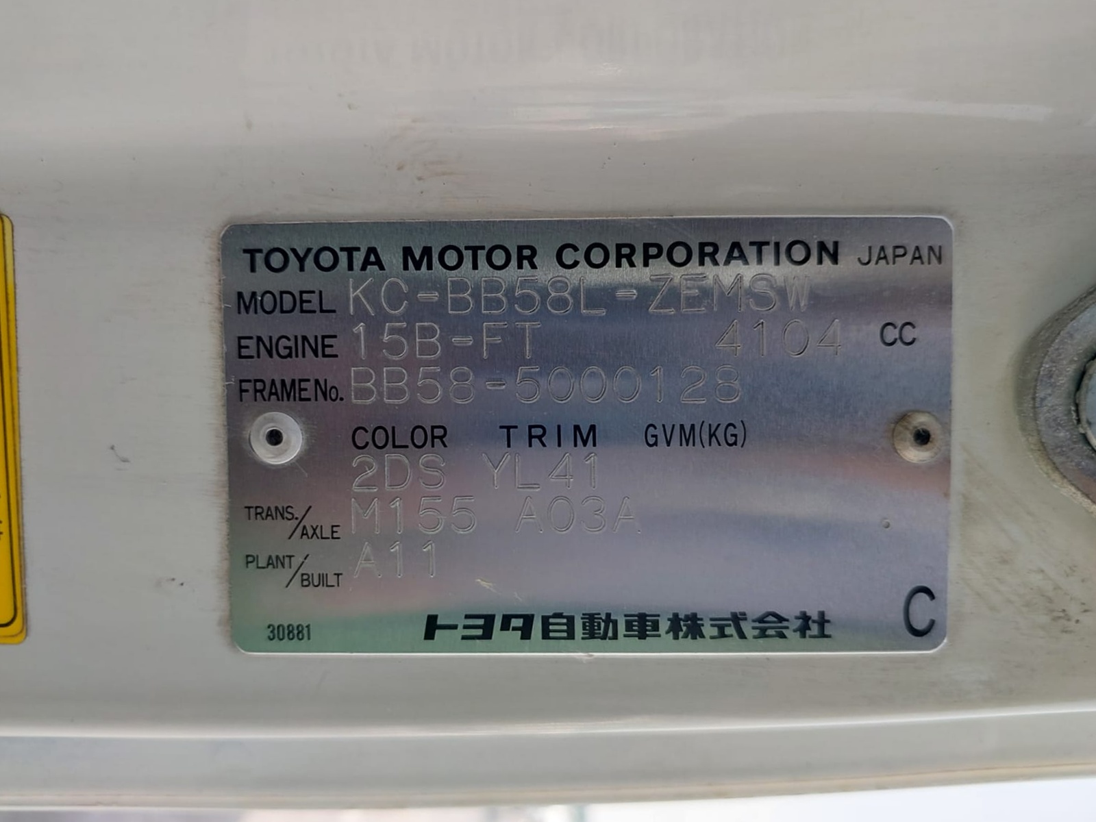 Chassis # BB58-5000128 Mileage 190400 (km)