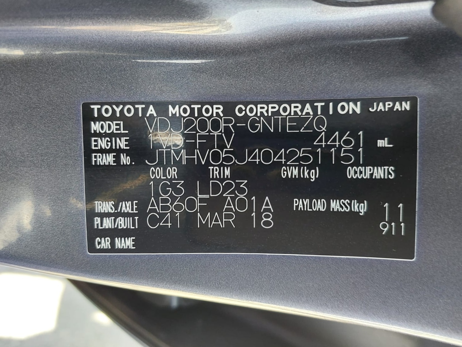 | Chassis # | JTMHV05J404251151 | Mileage | 118300 (km) |