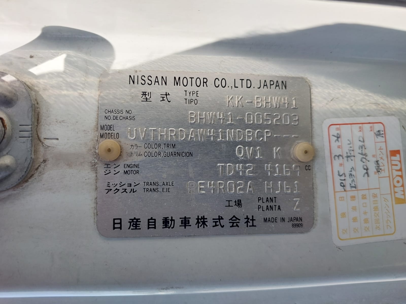 | Chassis # | BHW41-005203 | Mileage | 339300 (km) |