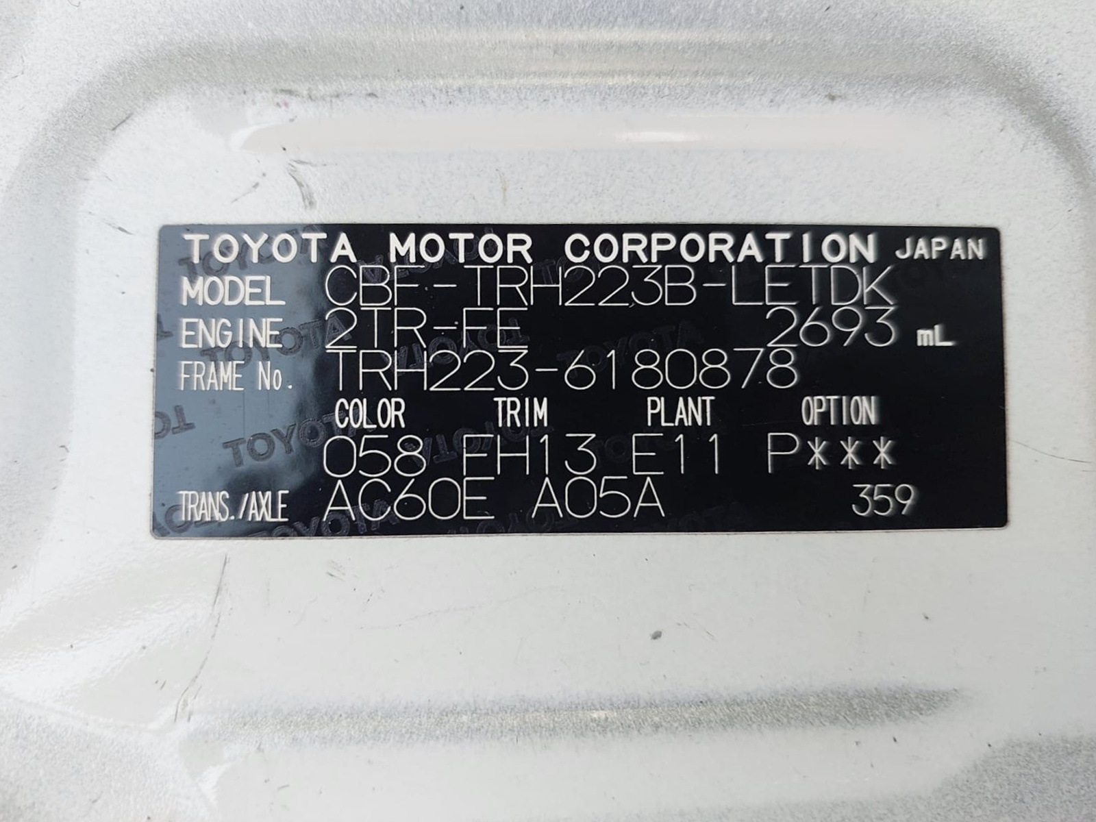 Chassis # TRH223-6180878 Mileage 107000 (km)
