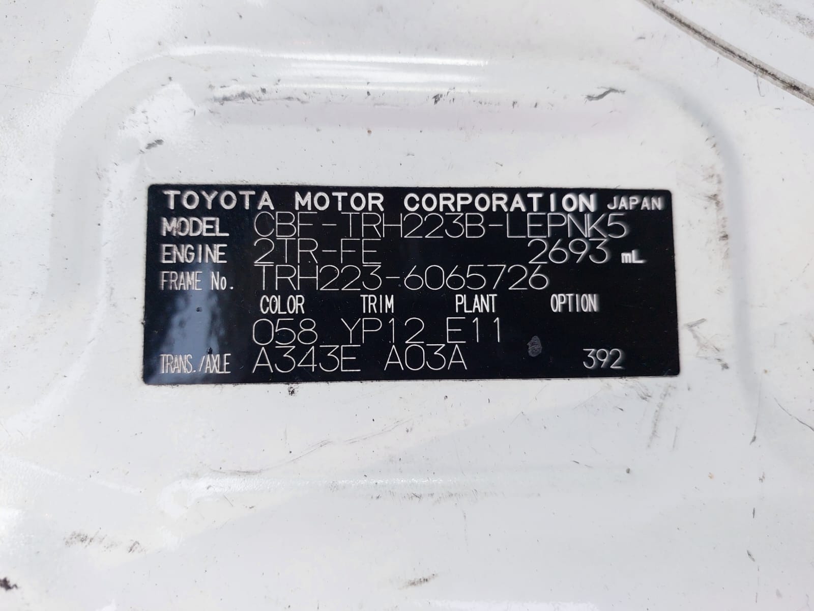 Chassis # TRH223-6065726 Mileage 254700 (km)
