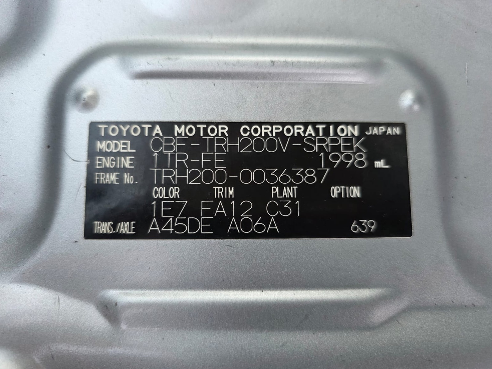 | Chassis # | TRH200-0036387 | Mileage | 256200 (km) |